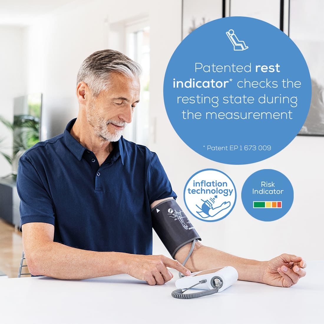 | Product weight | Blood pressure monitor: approx. 490 g (without batteries, with cuff); ECG stick: approx. 40 g |