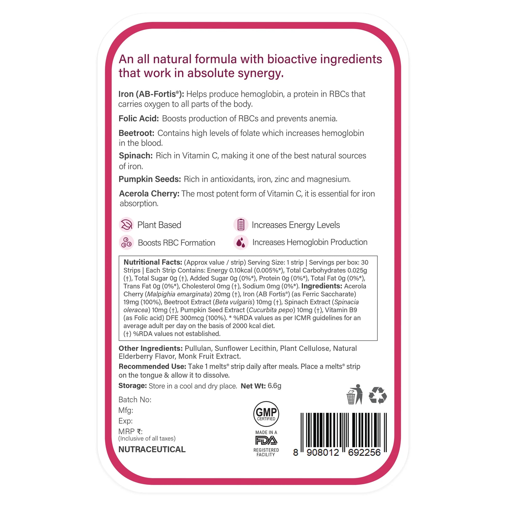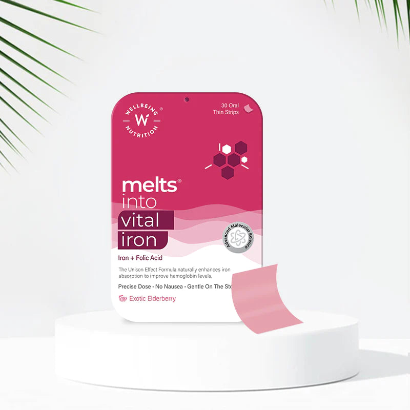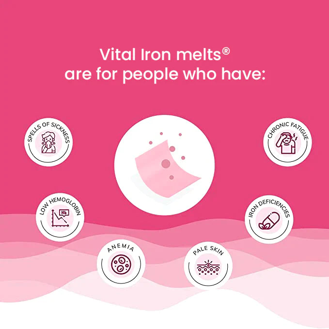 Feel weak often, or fatigued all day? Do you bruise easily, or feel dizzy often? Chances are, you have an iron deficiency. Try melts®️ Vital Iron – a small strip that dissolves in your mouth and works from within to boost natural iron absorption in your body!