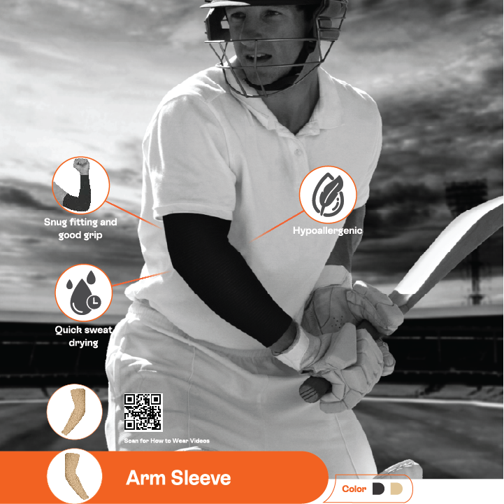 Tynor's Arm Sleeve is a protective sleeve designed to protect from sun burn while playing sports under the direct sunlight for long hours. It also protects from scratches and bruises during falls. High quality elastic material ensures supreme comfort during use. It has two-way stretchability which provides snug fitting and grip to prevent product migration during active sports.