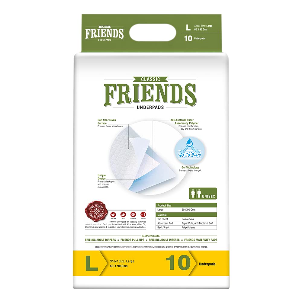 - Friends Classic Underpads Large have a SPECIAL TECHNOLOGY to CONVERT LIQUID to GEL