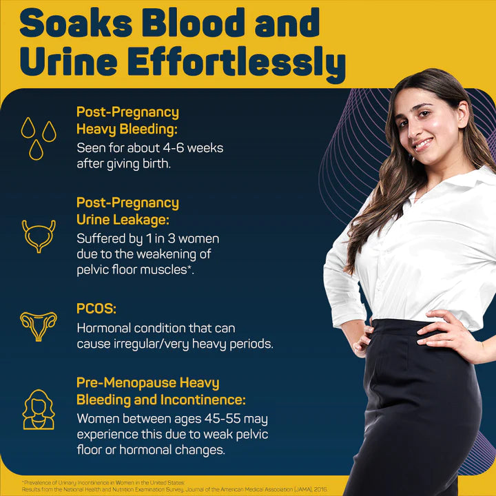 - Absorbs Blood and Urine: UltraThinz can handle heavy period flow, menopause and pregnancy-caused urine leakage and heavy bleeding, or light-medium incontinence due to other reasons.