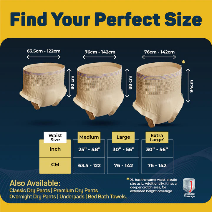 UltraThinz Slim Fit Dry Pants for Women are your extra-thin adult diaper pants designed to provide discreet protection against urinary incontinence! These invisible fit dry pants are comfortable, absorbent, and fit just like normal underwear.