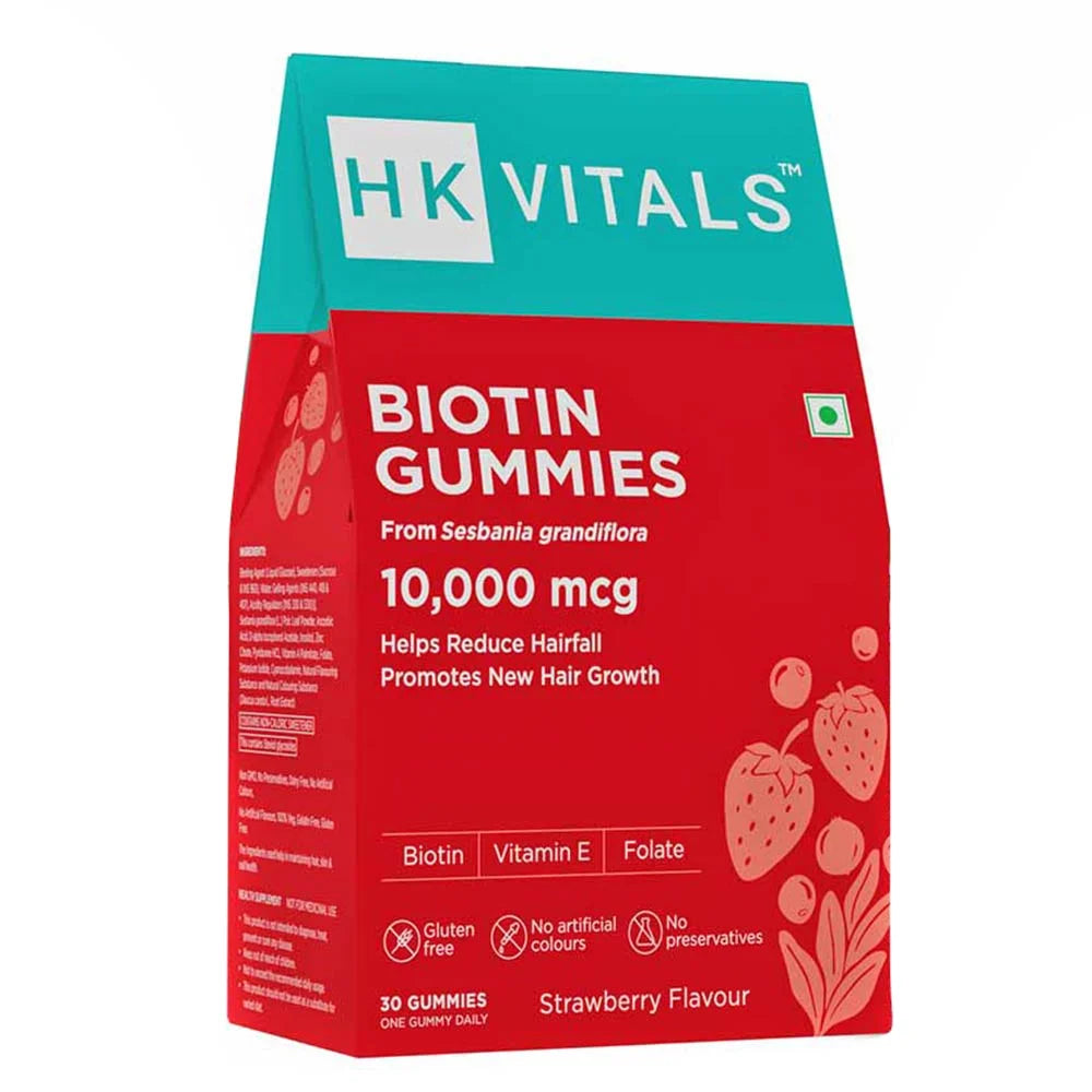 Everyday exposure to environmetal stressors and daily life stress causes direct harm to our hair, skin and nails. HK Vitals Biotin Gummies is a comprehensive formula enriched with Biotin, Zinc, Vitamin A, Viatmin E and Vitamin C. It heps with hair growth, nail strength, signs of ageing on skin and combats free-radical damage. It is completely vegan and guten free with no preservtives, added sugars and artificial colouring- ideal for all your beauty needs!