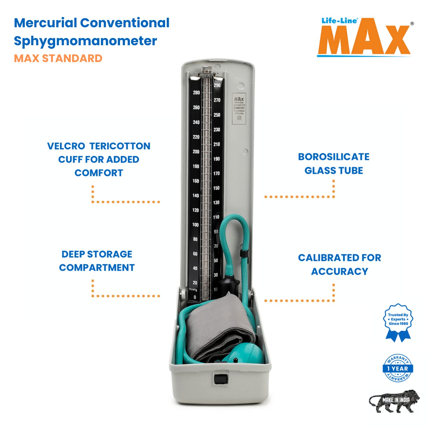 LIFE LINE MAX STANDARD Portable Mercurial Blood Pressure Monitor