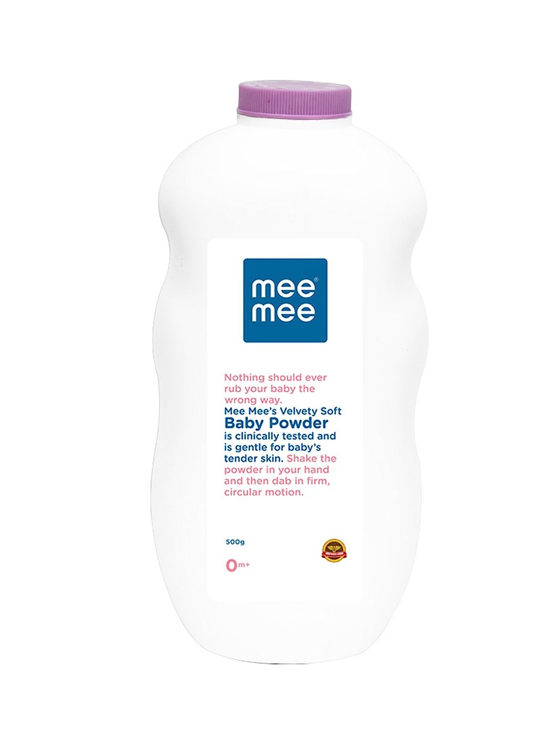 Mee Mee velvety soft baby powder is extremely light and keeps your baby's skin fresh and dry. Safe to use from birth and microbiologically tested, it can be used after bath, after a nappy change or just to freshen up during the day.