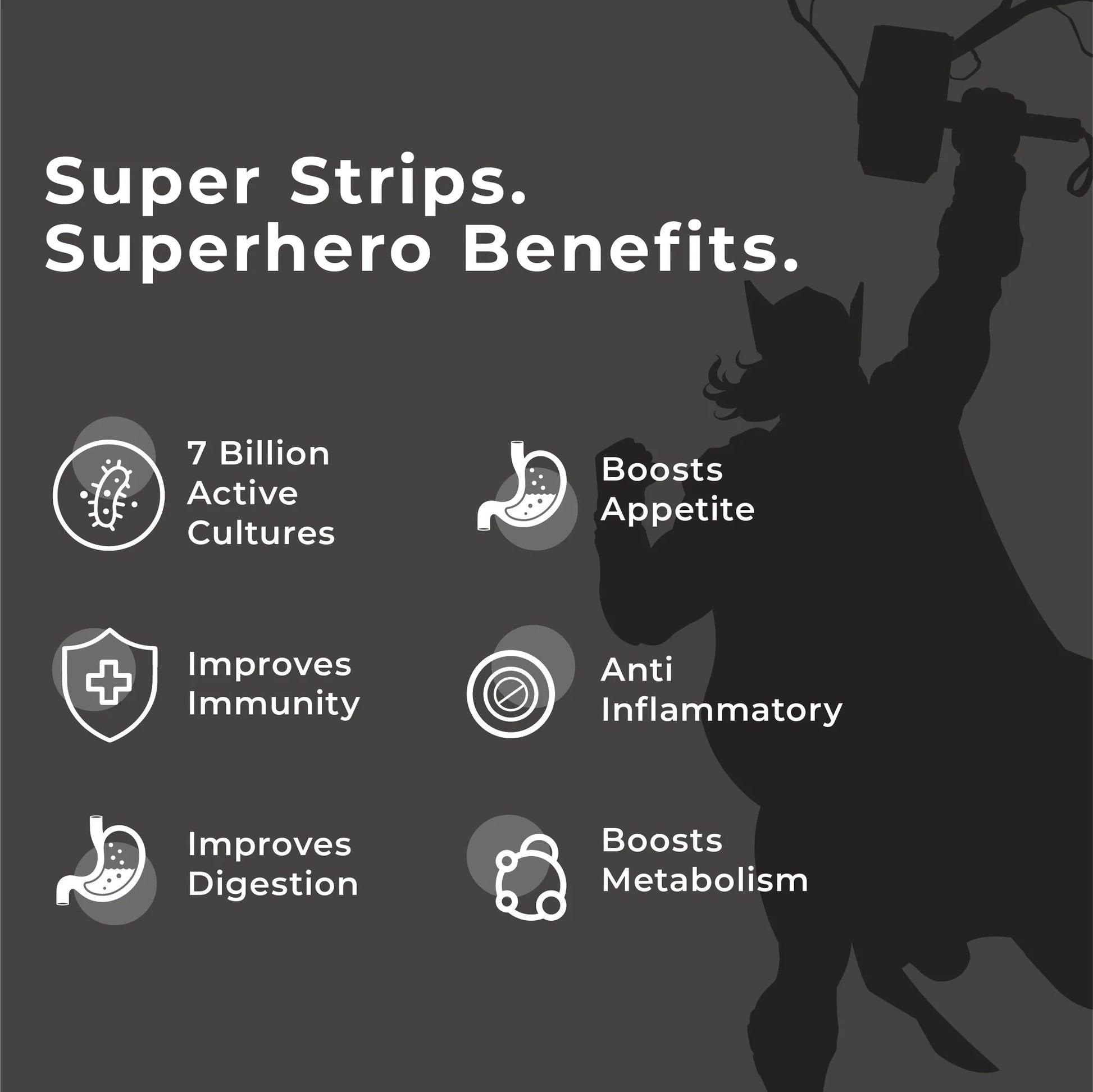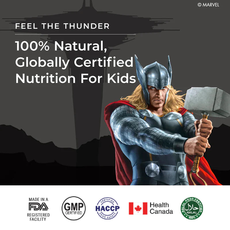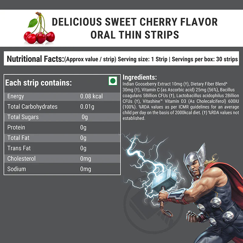 Even superheroes need backup. That’s why we’ve packed together 7 Billion (CFU) of good gut bacteria, Prebiotic fibre and Essential Vitamins to create an Asgardian army of beneficial bacteria that help keep little bellies in balance and help them thrive.