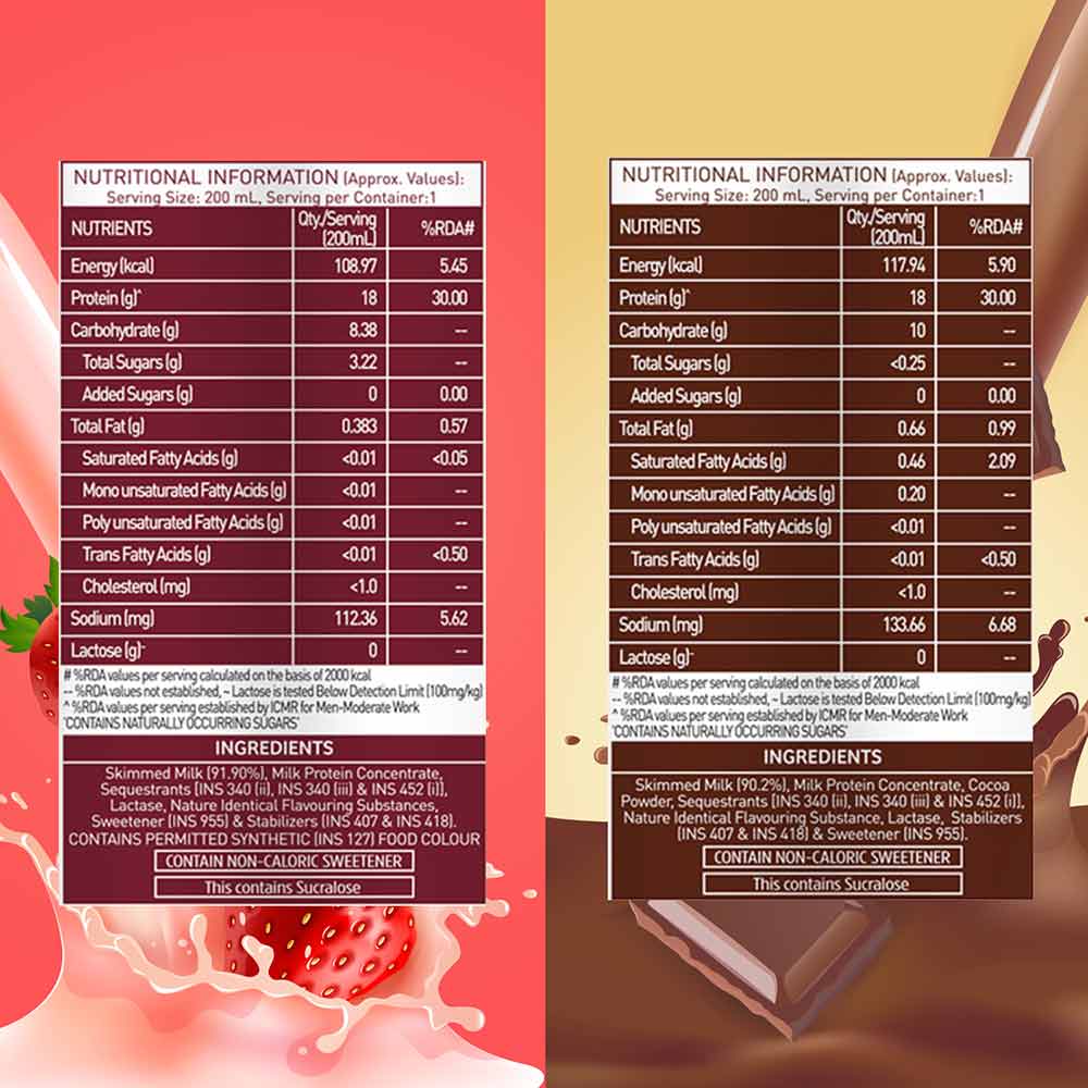 - 18gm Protein: With 250% higher protein than other milk shakes, it is a freeway to meet your daily protein needs, one bottle at a time. With as much as 18gm protein in ever bottle, gulp it down to rev up your metabolism and kick start muscle elevation.