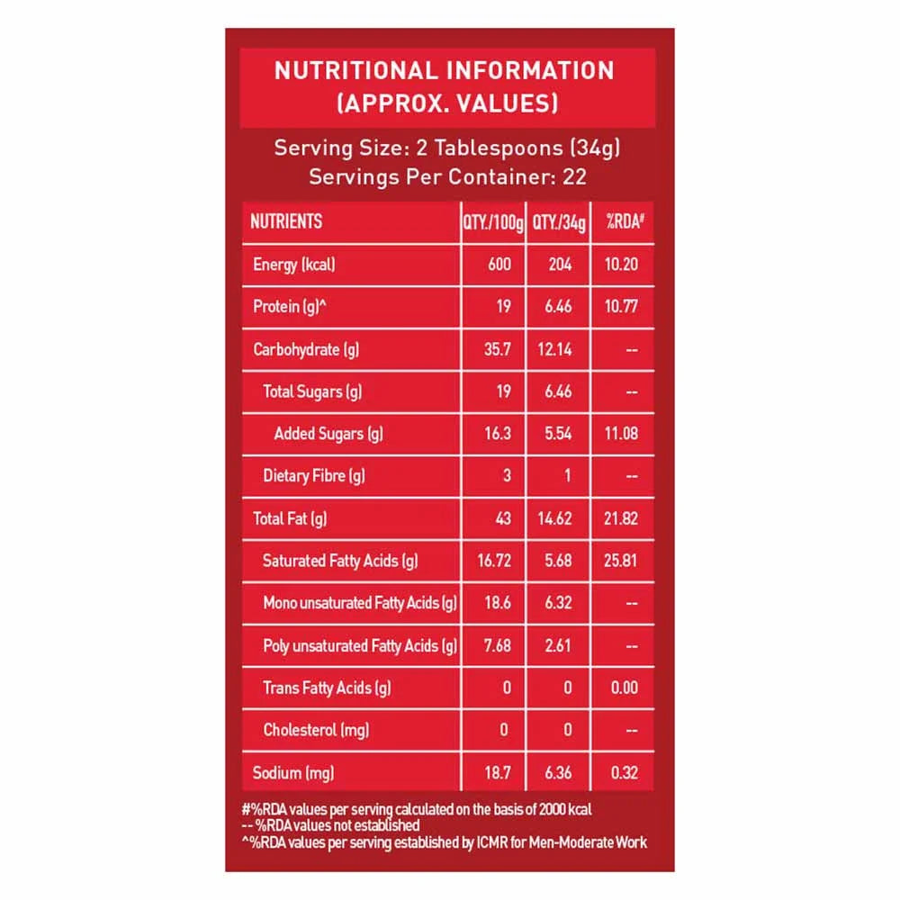 It has got no trans fats and delivers 19% protein to meet your daily protein needs and keep you energized. It also enriches you with 3% fiber to keep you feeling full for longer periods of time and experience better digestion. Dig a spoonful of it or add it to your shakes or smoothies; spread it on your toast or add to your bowl of morning oats, this spread is going to satisfy you like nothing else.