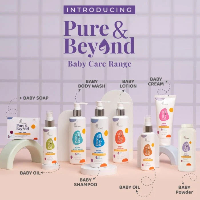 A range consisting of baby lotion, cream, oils, shampoo, soap, body wash and powder to take care of your babies skin and made with Purity of Nature, Backed by Science