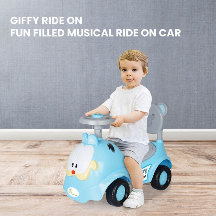 Double the fun time for your child, know how? R for Rabbit brings to you Giffy Ride On Car a fun Filled Musical Ride for kids. Giffy Ride on car is an adorable ride on car for kids with cute cat face and comfortable seat to the child enjoy ride on with his/her friends. Child can simply push the ride on car with legs and it will smoothly move forward. Inbuilt fun music ads more fun to the evening rides. Made with top quality PP material this ride on is a safe ride on car a perfect choice for kids.