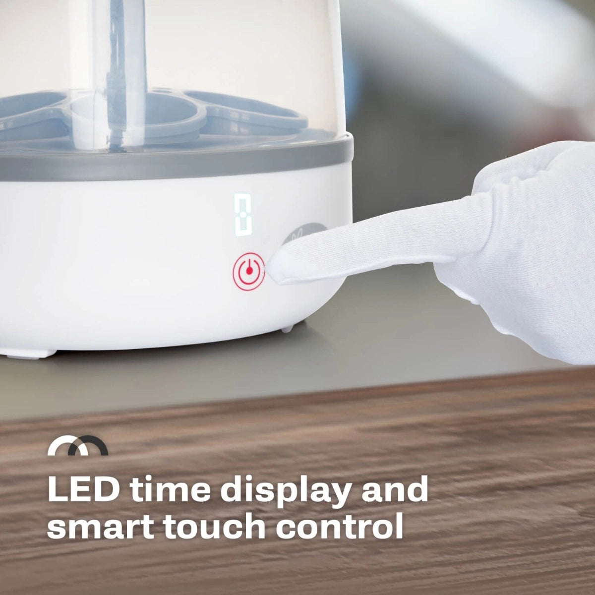 LED Timer Display & Touch Control: Easily check how much time is left for the bottles to sterilize through a countdown displayed on its LED timer display & easily put on/off with the tap of a finger on touch control.
