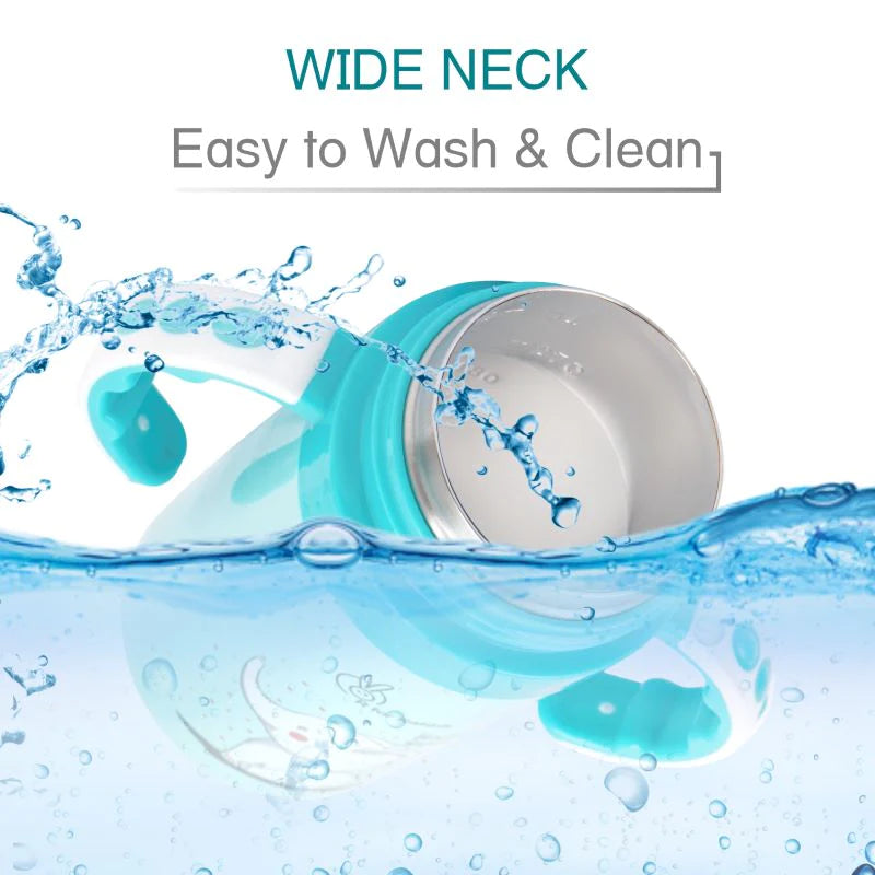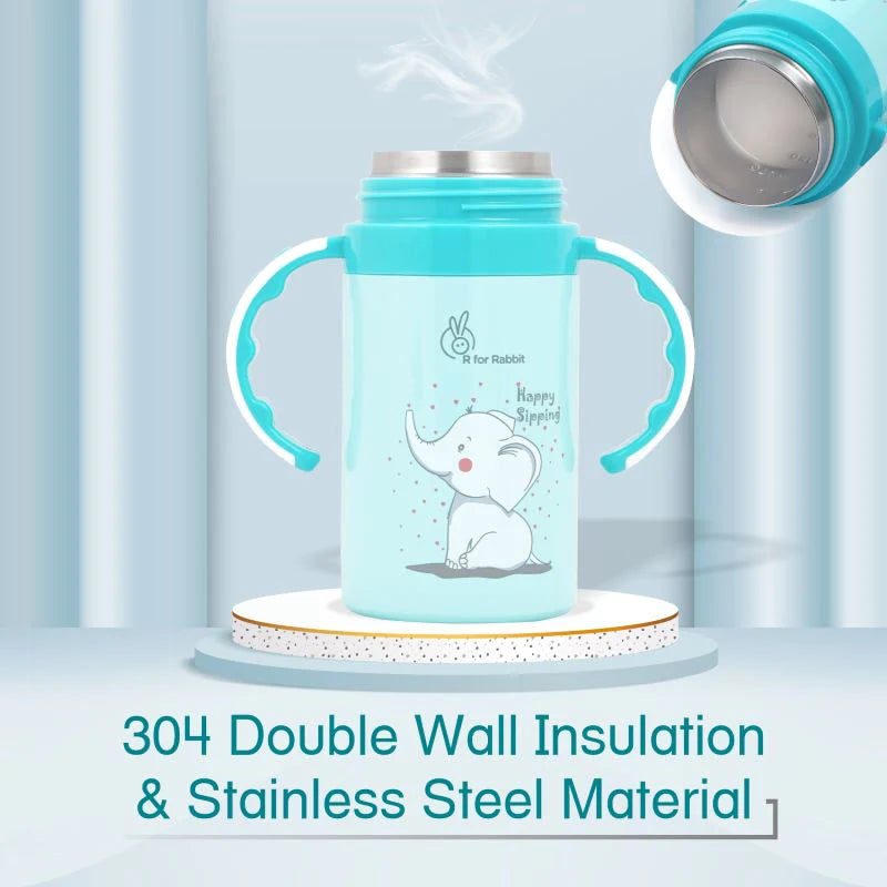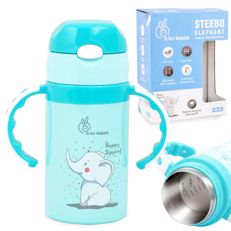Looking for a safe, comfortable and fun way to teach your kids how to sip independently? Bringing you Steebo Elephant Stainless Steel Sipper Bottles by R for Rabbit. These sipper bottles are made with stainless steel, pp and food grade silicone to ensure complete safety and hygiene for your baby. Its cap assures protection and its leak free design helps you to have hassle-free sipping time. You can also maintain the temperature of liquids inside this bottle for a longer duration due to its double-wall insulation. Have a happy sipping experience with R for Rabbit Steebo Elephant stainless steel sipper bottle.