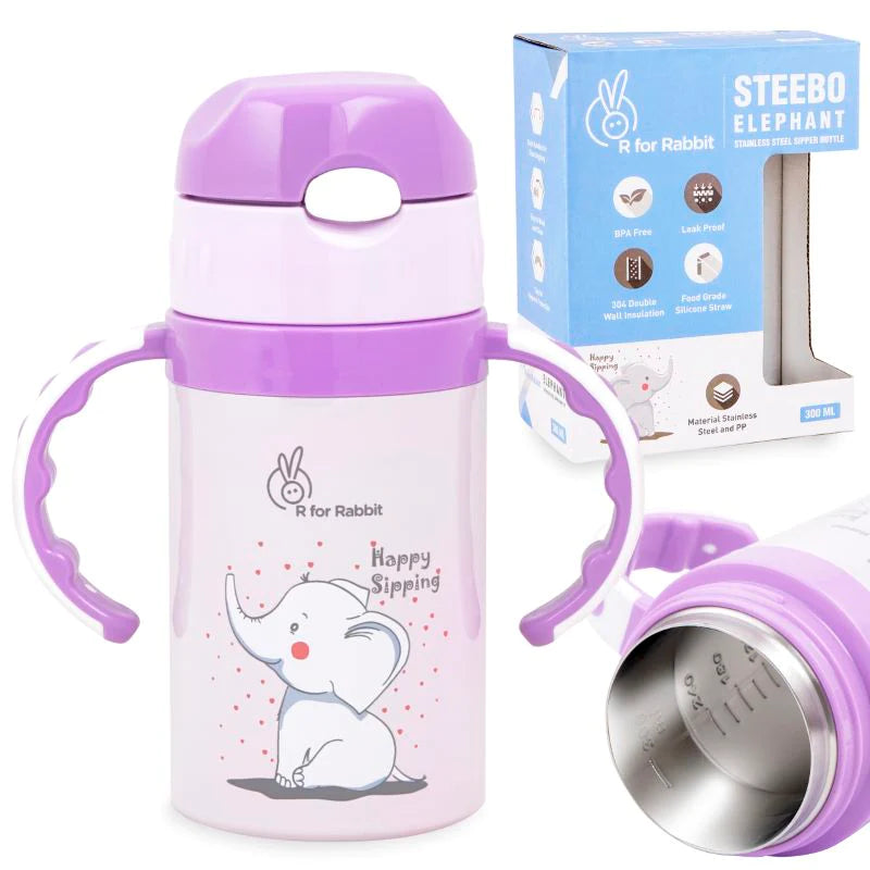 Safety 1st: R for Rabbit Steebo Elephant Sipper Bottle is made of PP and Stainless Steel making it BPA-free to ensure complete safety of your child.