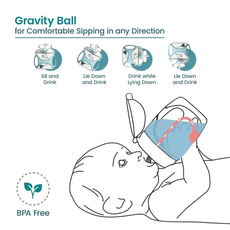 Gravity Ball: The gravity ball-weighted straw in the R for Rabbit Tritan Bumble guarantees a seamless liquid flow and a pleasant sipping experience, adjusting to your baby's movements for effortless drinking.