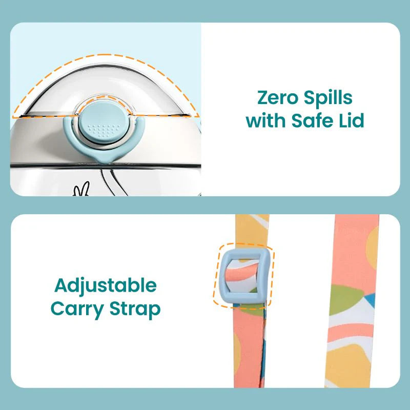 Adjustable Carry Strap: R for Rabbit Tritan Bumble kids' sipper water bottle features an adjustable strap for easy, on-the-go hydration. The flexible design allows for quick adjustment to ensure your child's comfort.