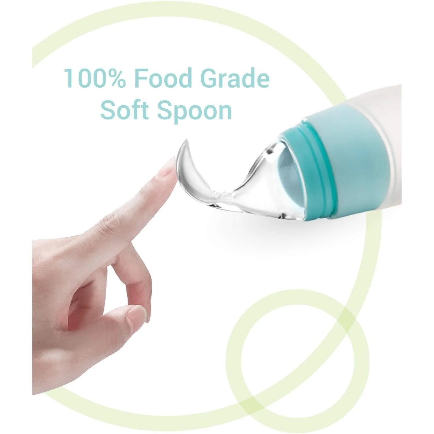 Easy To Use: First Feed Feeder can be used by simply holding it with one hand and pressing the soft silicone container to bring food on the spoon and feed the baby.