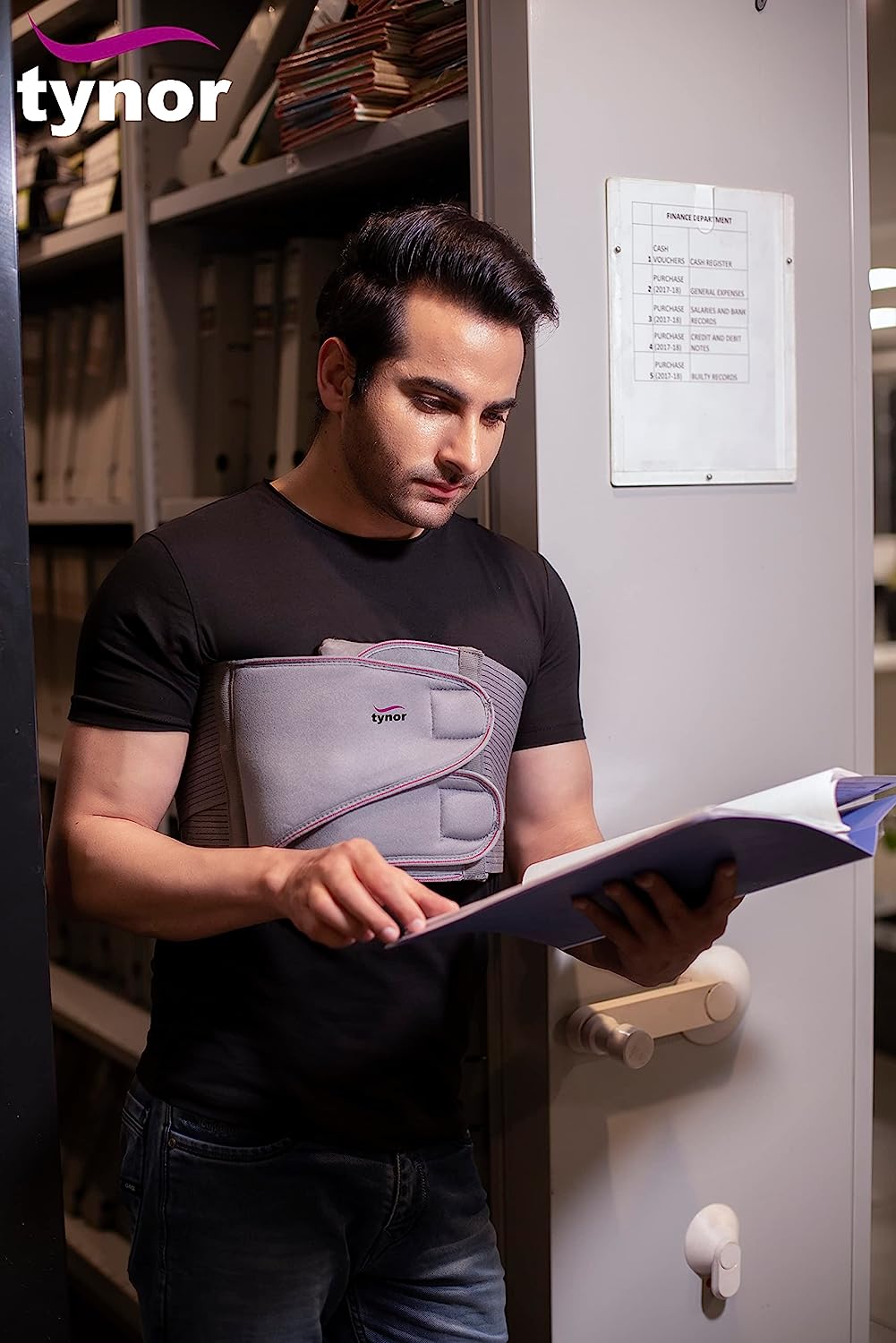 The Tynor Chest Binder is a belt that is applied to the thoracic region to compress and bind the rib cage and provide splinting to the sternum while allowing sufficient flexibility for comfortable breathing.