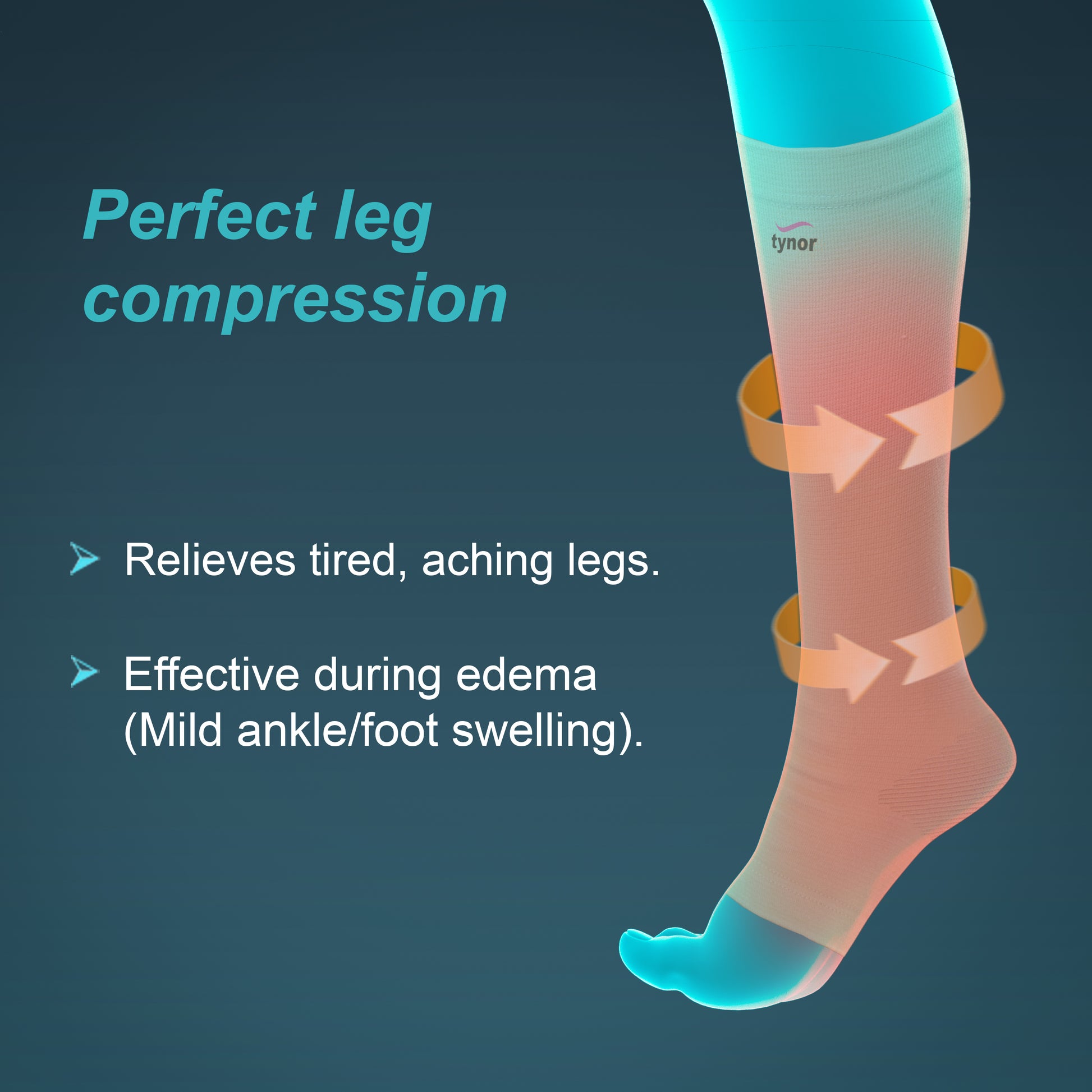 Tynor Compression Stocking Below Knee Classic are designed to provide controlled compression to the legs to prevent abnormal backflow of blood towards the heart caused by blood pooling in the legs. The compression of the superficial veins makes them stronger and prevents varicose veins from forming on their outer walls.