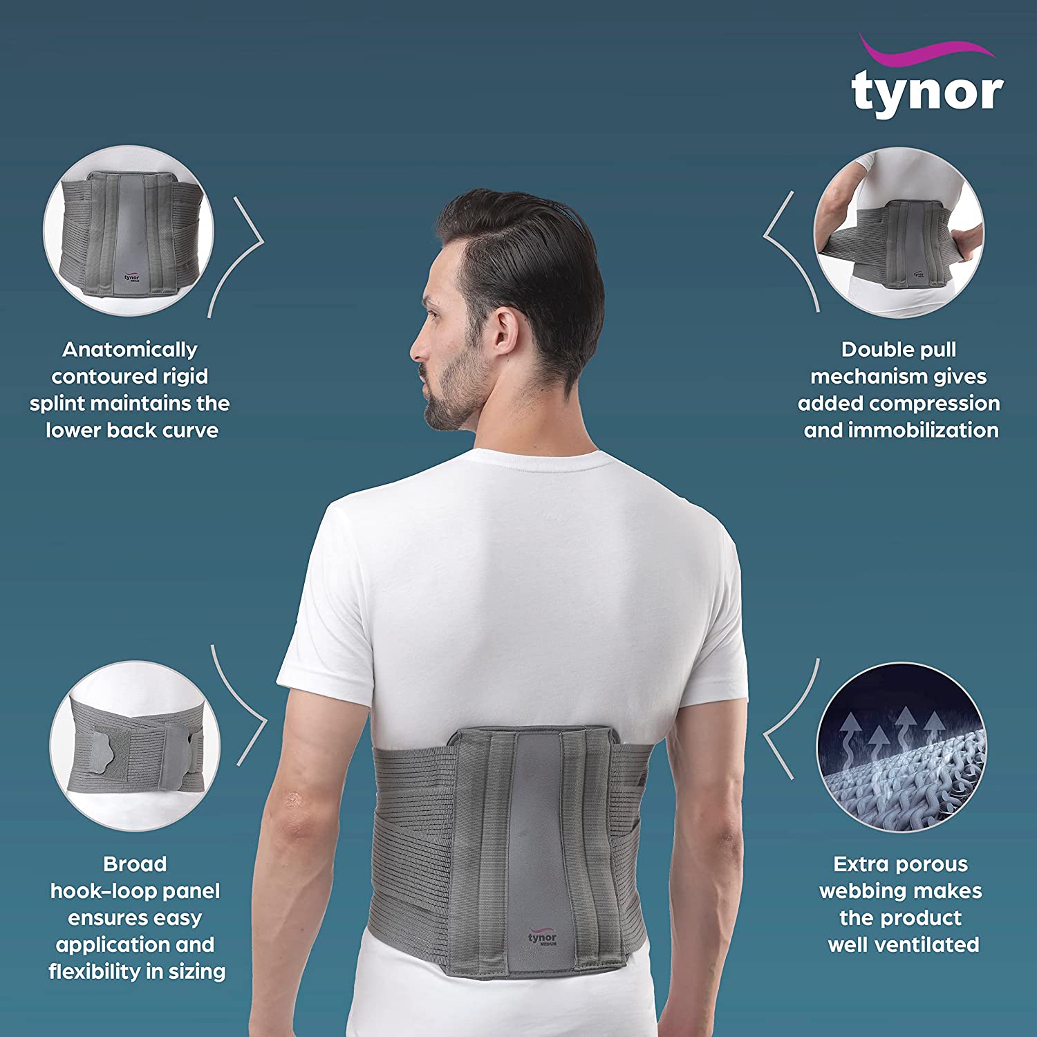 Tynor Contoured L.S. Support is a support that is scientifically designed to support and immobilize the lumbosacral region and correct the posture deformity to eliminate low back pain and other symptoms associated with it.