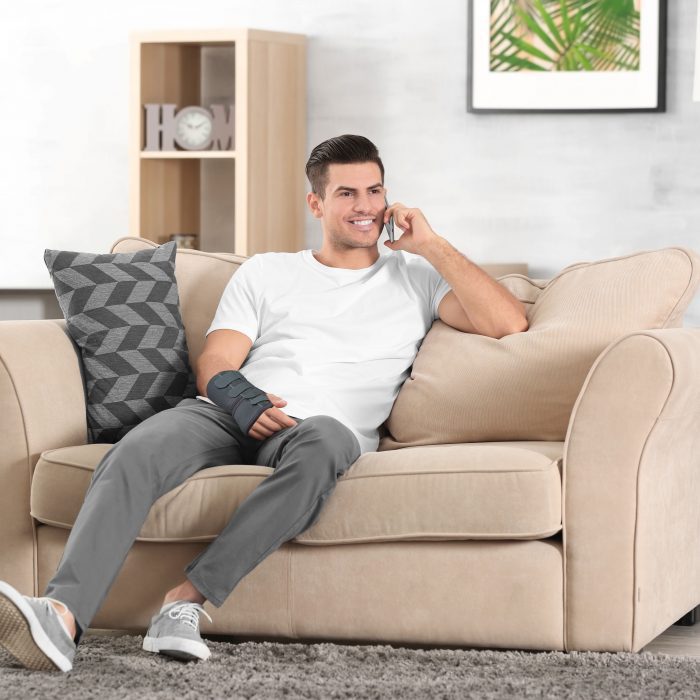 It is made from a strong, durable elastic material that is highly porous and comfortable. It maintains the wrist in the dorsi-flexion/ functional position while allowing full range of motion to fingers and thumb.