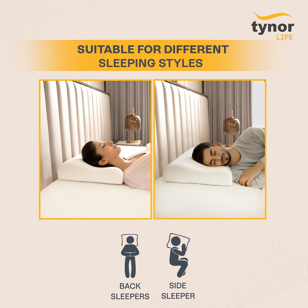 Carefully crafted the Tynor Elite Ortho contoured memory pillow boasts a contoured design that accommodates both long and short neck . It effortlessly cradles to the natural curvature of your neck, providing optimal support and eliminating discomfort. Wrapped in a luxurious and breathable plush cover, it ensures a restful sleep experience.