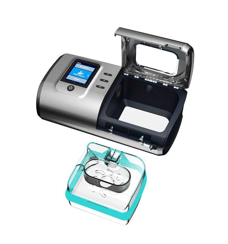 - Heated Humidification System: The humidifier moistens the air and is designed to make therapy more comfortable. Users can set the Humidity Level to off (0) or between 1 and 5, where 1 is the lowest humidity setting and 5 is the highest humidity setting. The user-friendly chamber design is very easy to disassemble and install, which is convenient for adding water and cleaning.