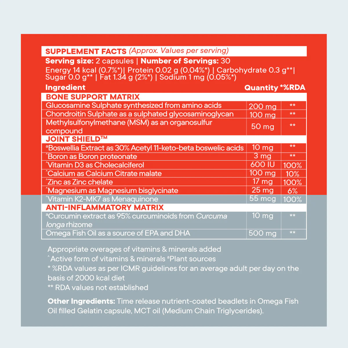 A consciously formulated bone and joint support supplement with clinically proven potent nutrients. Wellbeing Nutrition’s capsule uses 2-in-1 technology that combines fast acting omega-3 fish oil and a proprietary bone & joint shield matrix as enteric-coated microbeadlets. With targeted nutrients like glucosamine, chondroitin, methylsulfonylmethane (MSM), calcium, Vitamin D3 and boron among a few, SLOW Bone Support has shown to help in improved mobility and bone strength.