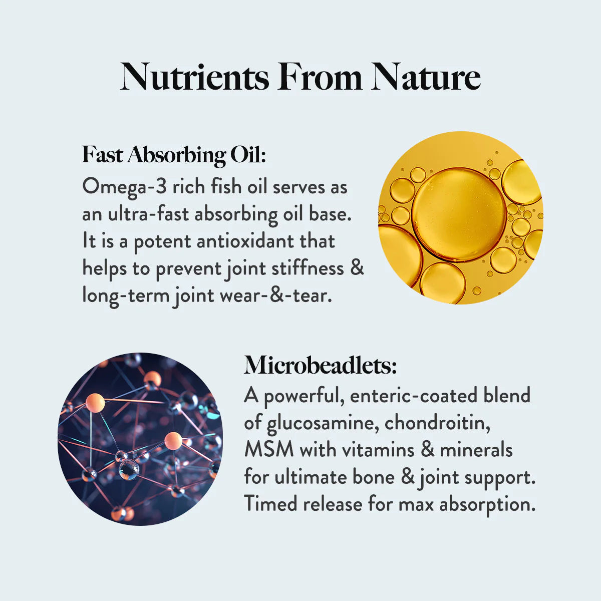 Vitamin-mineral rich microbeadlets that dissolve steadily, releasing nutrients slowly for maximum absorption.
