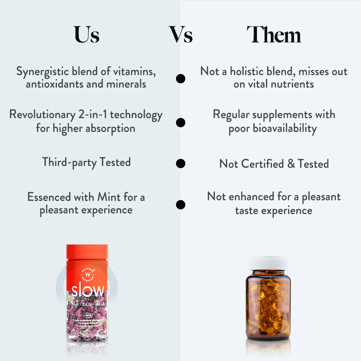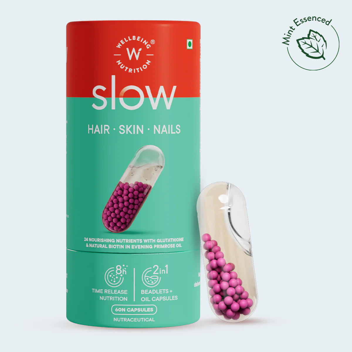 When to consume?For best results, we recommend you consume SLOW Skin, Hair & Nails capsules after your meal, such as breakfast or lunch.